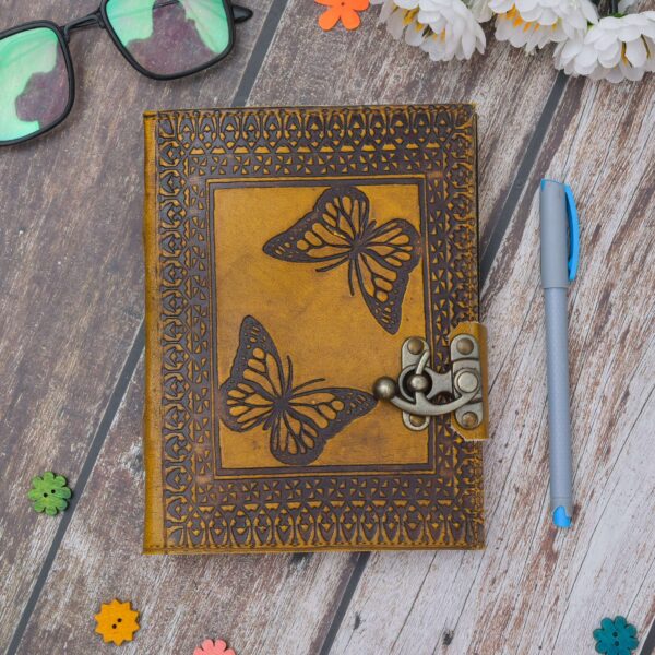 vintage handmade leather journal. Crafted with genuine leather, it radiates authenticity and charm, perfect for those who appreciate classic craftsmanship. The premium antique lock closure adds a touch of elegance and security, ensuring your thoughts and memories are safeguarded within its pages. Inside, you’ll discover 200 White handmade pages, providing ample space for your musings, sketches, and stories to unfold. Whether it’s for journaling, sketching, or planning, this versatile journal is a timeless companion for your creative endeavors. Treat yourself or a loved one to this exquisite piece, a celebration of tradition and creativity