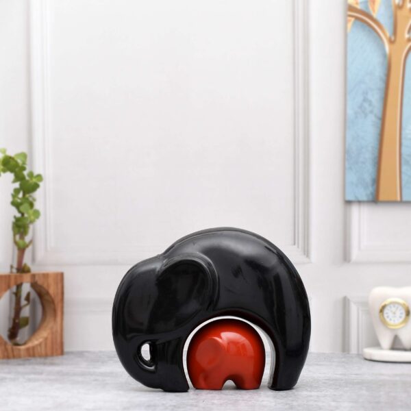 Transform your living space with the “Golden-Eared Triple Elephant Charm a set of three poly resin elephants in resplendent black with golden ears, each looking up in unison. These meticulously crafted figurines are designed to enhance your home d?cor with a touch of Indian heritage and cultural significance. In varying sizes, from small to large, each elephant exudes elegance and charm, symbolizing wisdom and prosperity. In Indian tradition, elephants are revered as symbols of good luck and fortune, making this set not only visually appealing but also meaningful. Whether displayed in your living room, office, or given as a unique gift, these elephants infuse your space with a sense of elegance and a connection to Indian tradition. Each piece is a testament to quality craftsmanship, ensuring that they maintain their lasting beauty and appeal. Make a statement with this elegant ensemble or share the cultural significance of these elephants with a loved one. Experience the beauty and meaning they bring to your surroundings, creating an atmosphere of prosperity and good fortune.