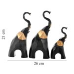Transform your living space with the “Golden-Eared Triple Elephant Charm a set of three poly resin elephants in resplendent black with golden ears, each looking up in unison. These meticulously crafted figurines are designed to enhance your home d?cor with a touch of Indian heritage and cultural significance. In varying sizes, from small to large, each elephant exudes elegance and charm, symbolizing wisdom and prosperity. In Indian tradition, elephants are revered as symbols of good luck and fortune, making this set not only visually appealing but also meaningful. Whether displayed in your living room, office, or given as a unique gift, these elephants infuse your space with a sense of elegance and a connection to Indian tradition. Each piece is a testament to quality craftsmanship, ensuring that they maintain their lasting beauty and appeal. Make a statement with this elegant ensemble or share the cultural significance of these elephants with a loved one. Experience the beauty and meaning they bring to your surroundings, creating an atmosphere of prosperity and good fortune.