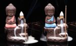 Meditating Monk Buddha Smoke Backflow Cone Incense Holder Decorative Showpiece with 10 Free Smoke Backflow Scented Cone Incenses