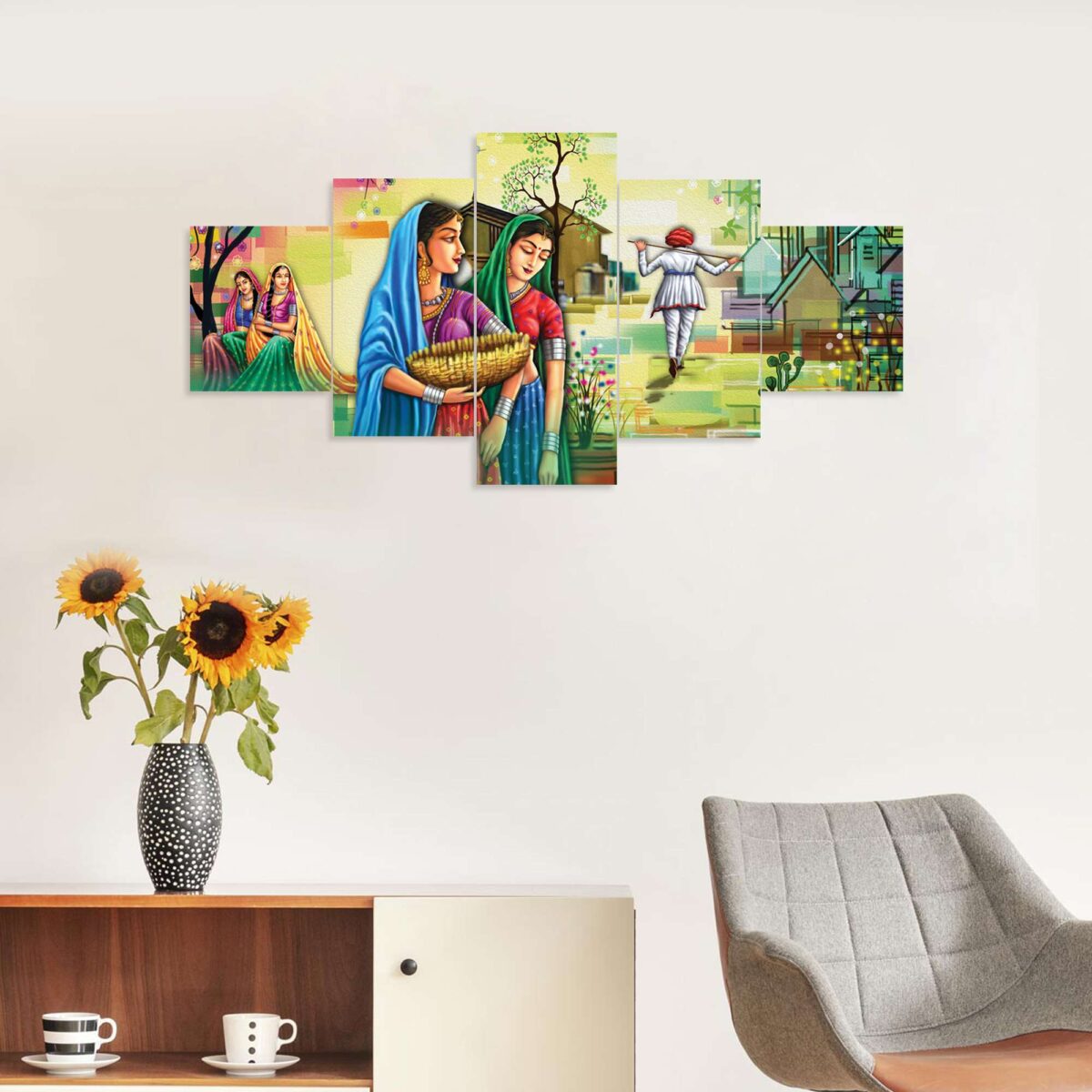 Rajsthani Set of Five 3D Framed Paintings for Wall Decoration – Ideal for Home, Living Room, and Bedroom (75 x 43 CM)